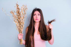 Ungeeignete Pflegeprodukte, Fehler bei der Haarpflege sowie häufiges Haarefärben können das Haar strapazieren und zu Spliss, trockenem Haar oder Haarausfall ...
